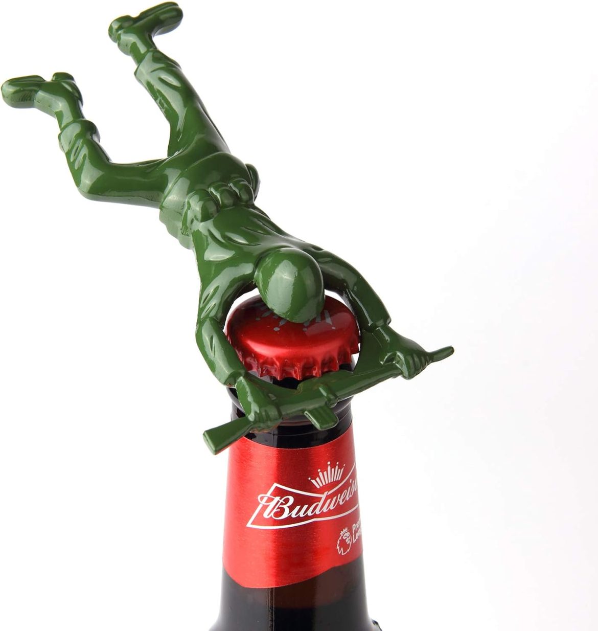 This die-cast metal bottle opener in the shape of a marching plastic soldier pops tops with tactical precision because even beer needs a commanding officer.